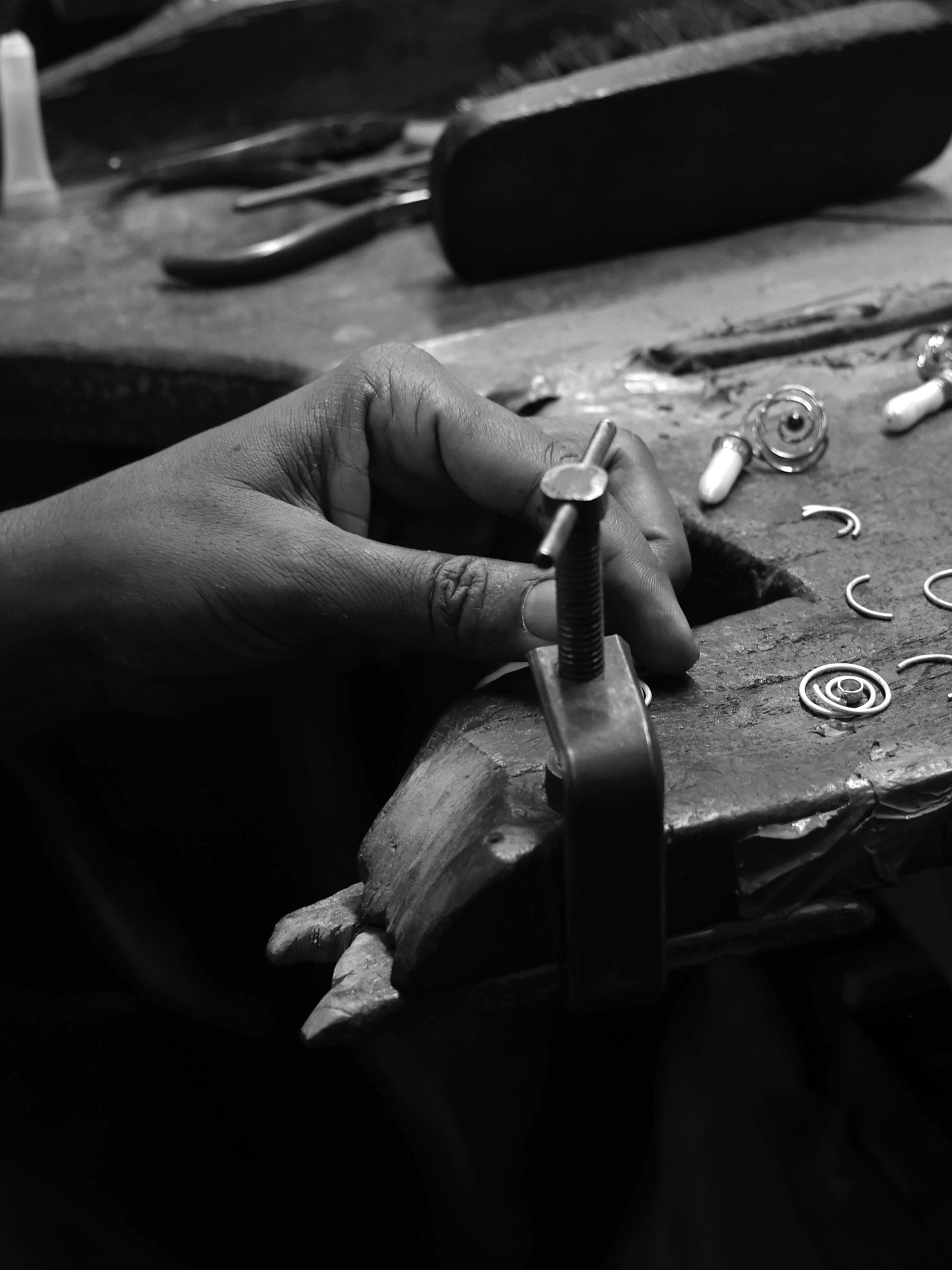 Once the design is perfected, it is handed over to skilled artisans who transform it into reality. Each piece is handcrafted in India at a dedicated workshop, where traditional craftsmanship blends seamlessly with modern techniques. Every curve, detail, and stone setting is shaped by hand, reflecting the artistry and care that go into your jewellery.