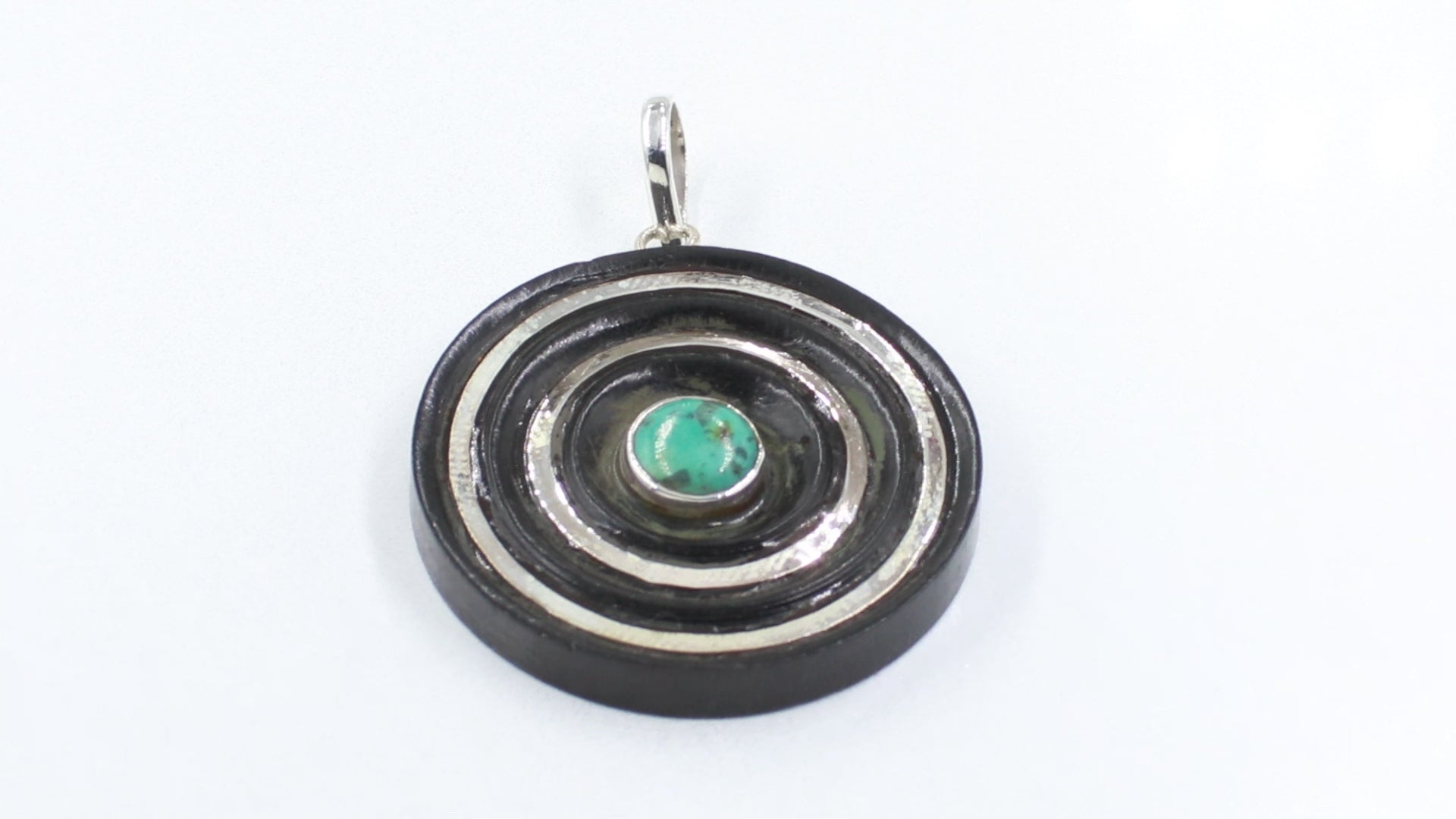 Silver Ebony Wood Turquoise Gemstone Spiral Pendant