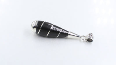 Black And White Strip Design Sterling Silver ebony Wood Pendant