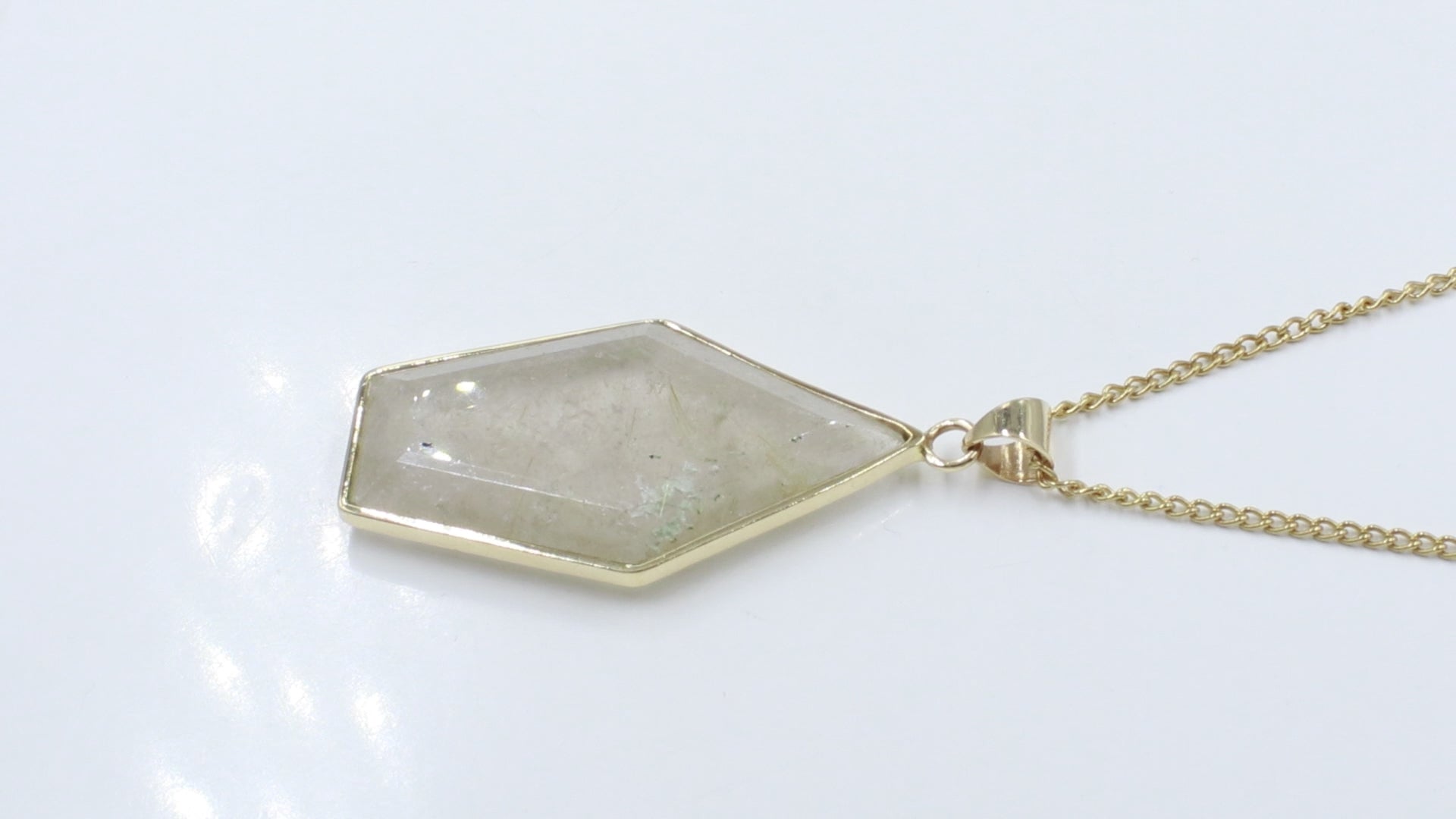 Designer Brass Pentagon Necklace with Golden Rutilated Quartz
