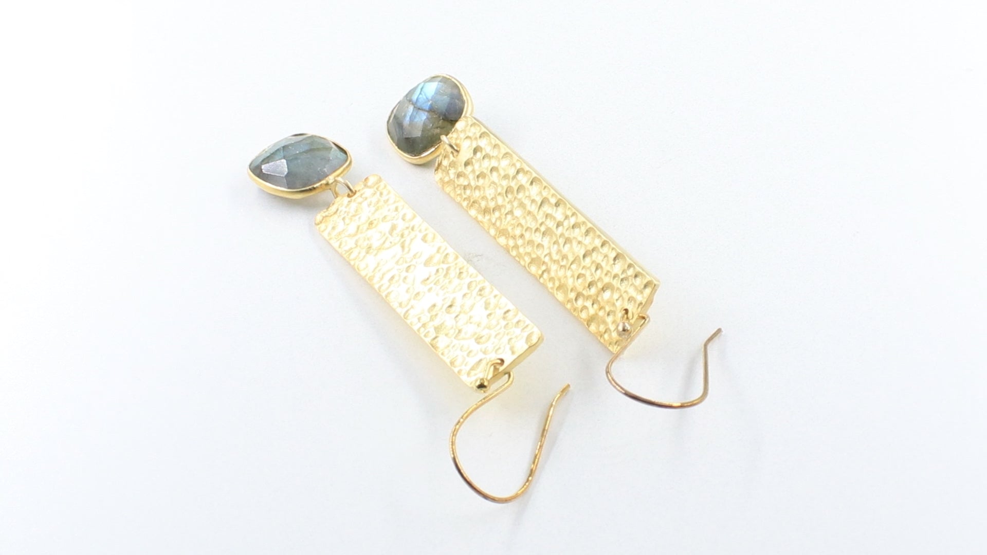 Brass Labradorite Dangle Earrings with Diamond Hammered Texture