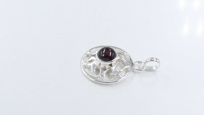 The round shape of the garnet gemstone complements the sterling silver setting, enhancing the overall allure of the pendant. The rich red hue of the garnet symbolizes passion and energy, making this pendant a perfect choice for those looking to add a pop of color to their ensemble.