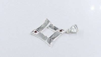 This elegant pendant features a small, rounded, faceted red garnet set in a classic Sterling silver mounting. The vibrant red garnet gemstone is beautifully cut to enhance its natural brilliance, making this pendant a striking accessory for any occasion.