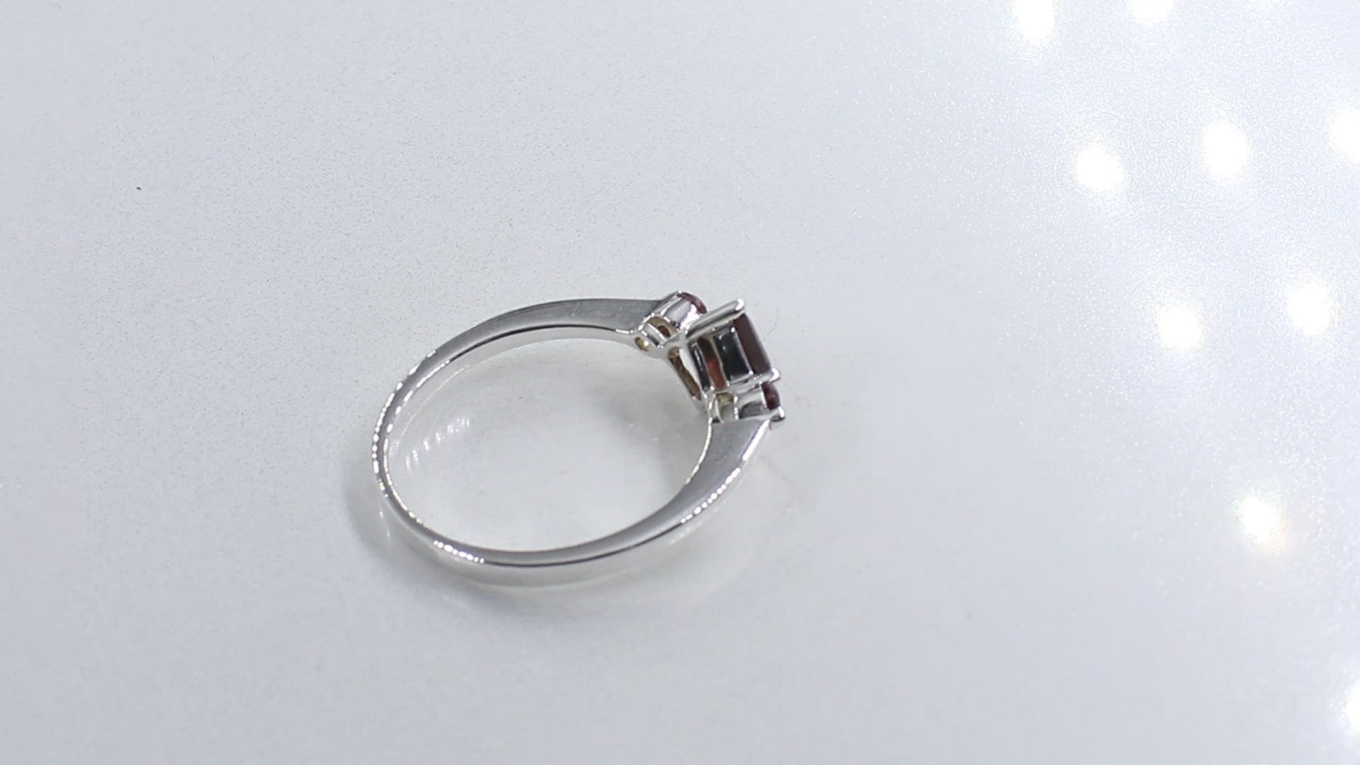 The sleek silver band gently curves to cradle the stones, giving it a soft flow and graceful structure. This ring is both eye-catching and comfortable, making it a versatile choice for daily wear or special occasions. The clean lines and geometric charm of the square stone give it a contemporary edge, while the warm garnet color brings a classic touch.