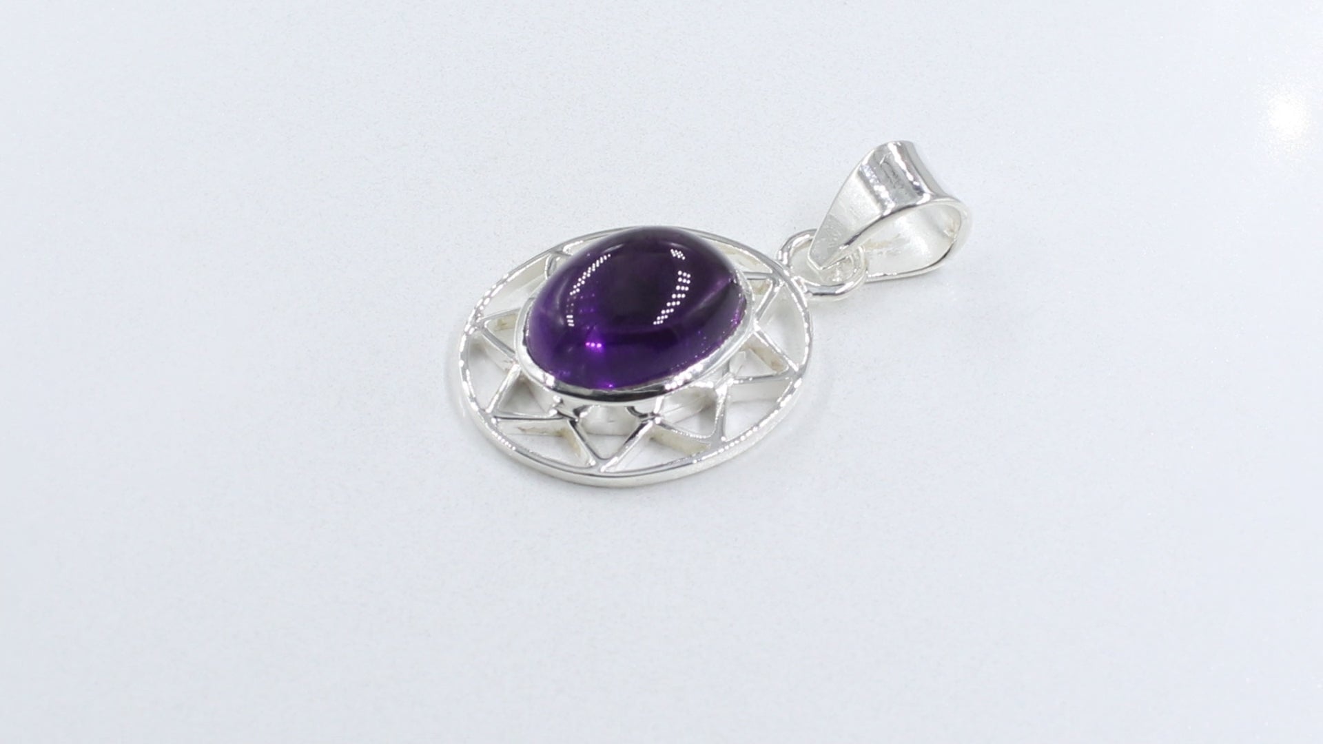 Amethyst Stone Oval Shape Designer Pendant Sterling Silver Pendant